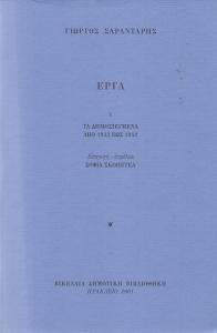 «...Στις 25 Φεβρουαρίου φέτος έκλεισαν 60 χρόνια από το θάνατο του Γιώργου Σαραντάρη. Πέθανε σε μια ηλικία και υπό συνθήκες τέτοιες που δεν στάθηκε δυνατόν να φροντίσει ο ίδιος μια συγκεντρωτική έκδοση του έργου του. Αλλά και αν ακόμα υποθέσουμε πως έκανε κάτι παρόμοιο, έστω εν μέρει, διόλου μα διόλου βέβαιο δεν είναι πως οι αποφάσεις του και οι επιλογές του θα ήταν οι ίδιες με όσες ακολουθούνται εδώ. (...) Για λόγους που εκτίθενται στην εισαγωγή, μολονότι προφανείς, ξεχωρίζουμε ό,τι δημοσίευσε ο ίδιος ο Σαραντάρης από τα κατάλοιπά του. Δεν έχει την έννοια διαχωρισμού της ήρας από το σιτάρι ούτε των προβάτων από τα ερίφια, ακολουθεί απλώς την ισχύουσα πρακτική της φιλολογίας. (...) Ήδη διευκρίνισα πως την εργασία αυτή την ανέλαβα κατόπιν προτροπής, κατά τίποτε ωστόσο δεν απαλλάσσομαι από την ευθύνη της. Οι προτρέψαντες δεν υπάρχουν πλέον, φευ, ανάμεσά μας για να εκφράσουν την ικανοποίηση ή την απαρέσκειά τους για το αποτέλεσμα. Σίγουρα το γεγονός πως δεν ολοκληρώθηκε παρά ύστερα από σειρά παντοδαπών εμποδίων δεν βρισκόταν στις προθέσεις κανενός μας -αν και παραμένει μια λεπτομέρεια που ίσως δεν είναι παντελώς άσχετη με το ίδιο το θέμα του βιβλίου». (...)